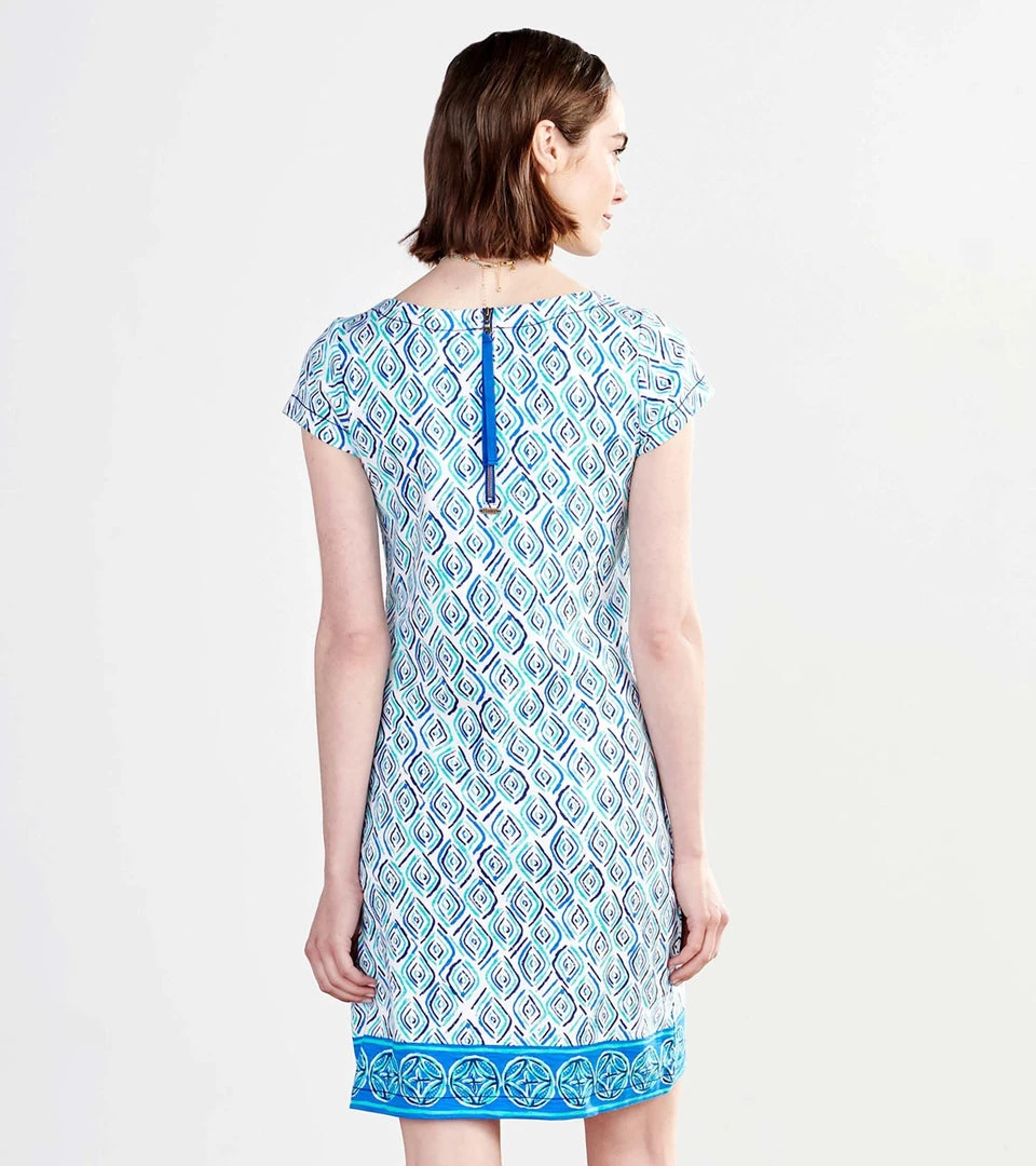 - This versatile dress can be dressed up or down, making it suitable for various events. Pair it with heels for a formal look or with sandals for a casual outing. The blue shoreline ripples design adds a touch of elegance.