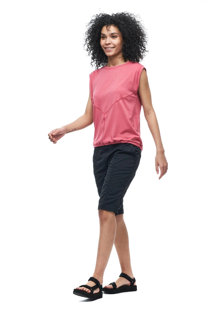 The GOMA sleeveless top is made from fabric containing Lyocell, a cellulosic fiber made of wood pulp obtained from sustainable forests. Partially eco-friendly, drirelease® Lyocell ensures long-term fabric performance and maintains its softness after wash. It has moisture-wicking and fast drying properties, which minimizes odours and maximizes comfort and has a UPF rating 30+. These features make this top versatile, great for travel and various outdoor activities.