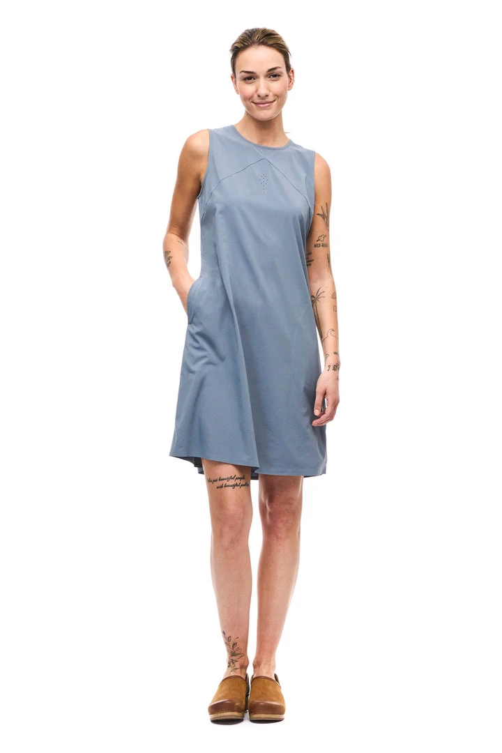 The FRIVOL dress is made of light woven fabric that offers comfort, lightness, softness and stretchability. The FRIVOL dress also have hand pocket with laser cut and bonded finishing to ensure that its both useful and fashionable. The fabric dries quickly, has moisture wicking properties and has a UPF rating 30+. These features make this dress versatile, great for travel and various outdoor activities.