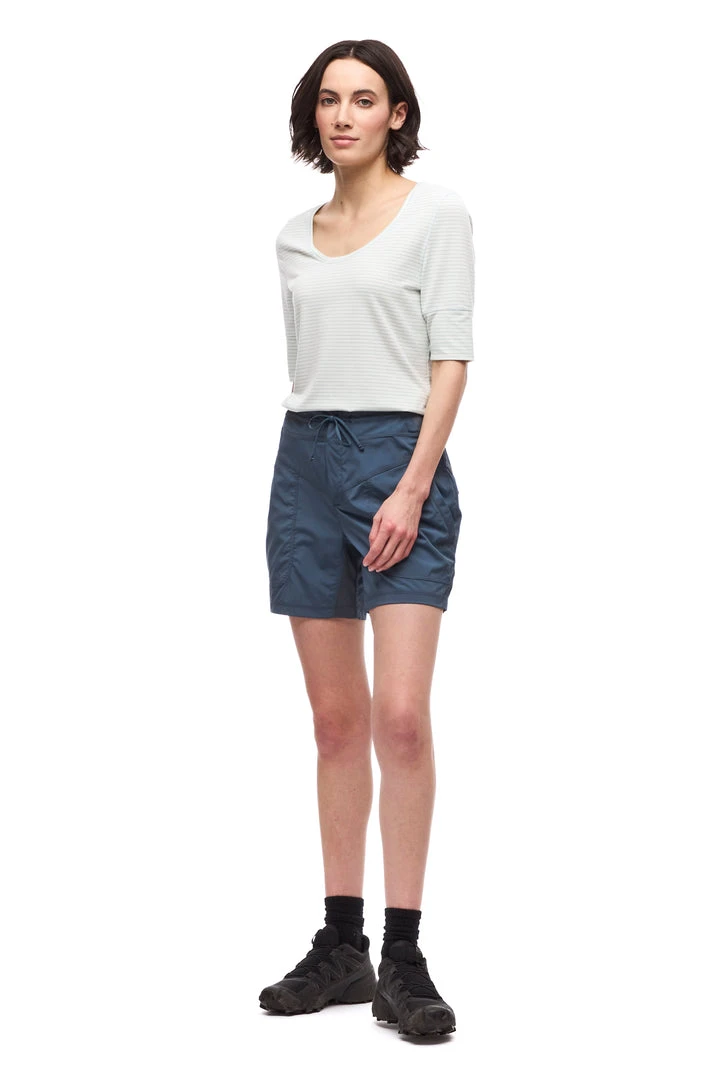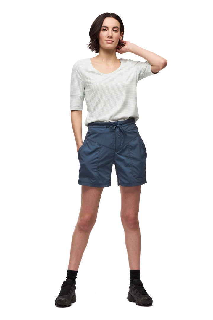 The SAHRA short is made of woven stretch fabric that is light, strong, and 2-way stretch. The weave offers ease of movement, dries quickly, wicks moisture and has a UPF rating 50+. The SAHRA shorts are the perfect piece to hug the waist with the adjustable slider and elastic. Let’s not forget the useful pockets with zippers so you don’t lose your belongings while hiking. These features make this short versatile, great for travel and various outdoor activities.Â