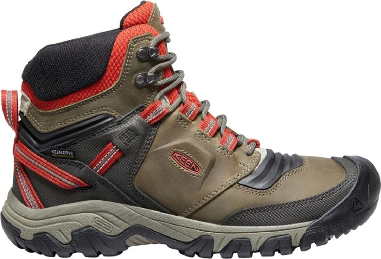 Keen Men’s Ridge Flex Mid WP Hiking Boots – Dark Olive/Ketchup – Waterproof & Durable