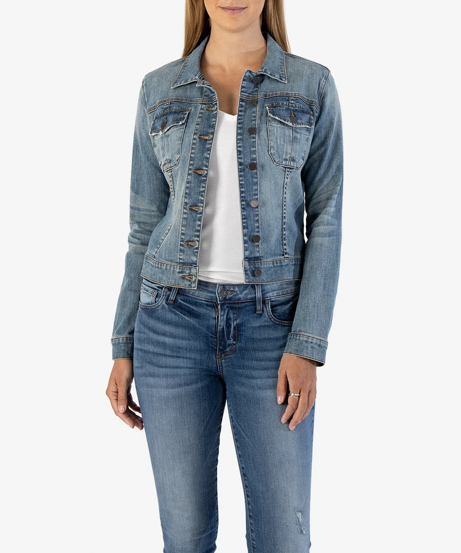 - Stay trendy with the Kut Denim Women’s Amelia Jean Jacket in Liberal Wash Medium. This denim jacket combines classic style with modern details for a chic look.