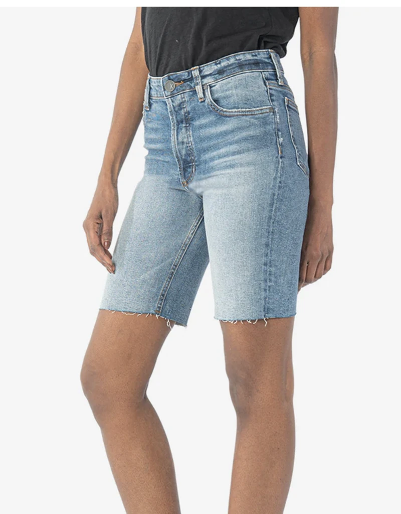 Kut Denim WOMENS Margot High Rise Long Short – Hidden Button Positive Wash | Comfortable & Stylish Denim Shorts