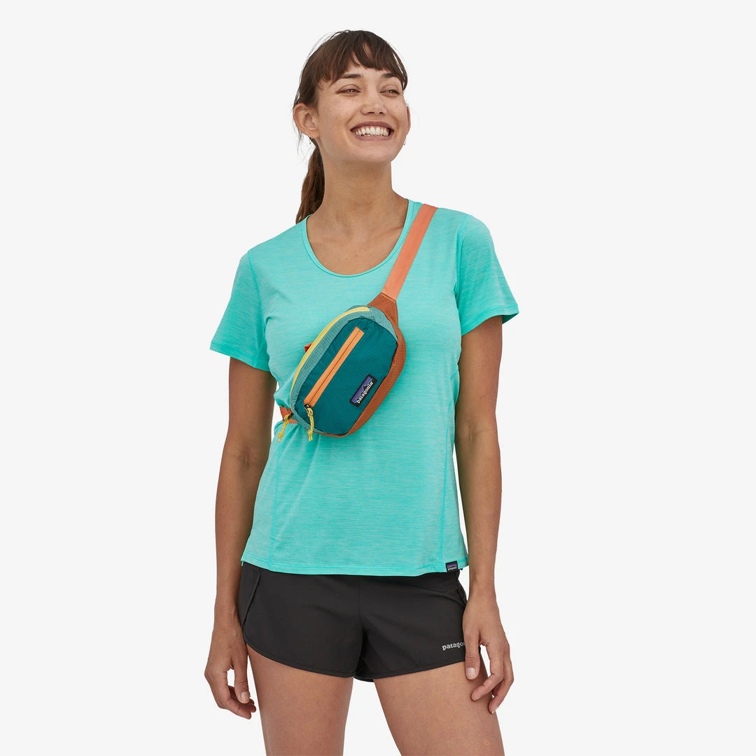 This tough, lightweight 1-liter hip pack carries the bare essentials and stows into its own pocket when not in use. Made with 100% recycled body fabric, lining and webbing.