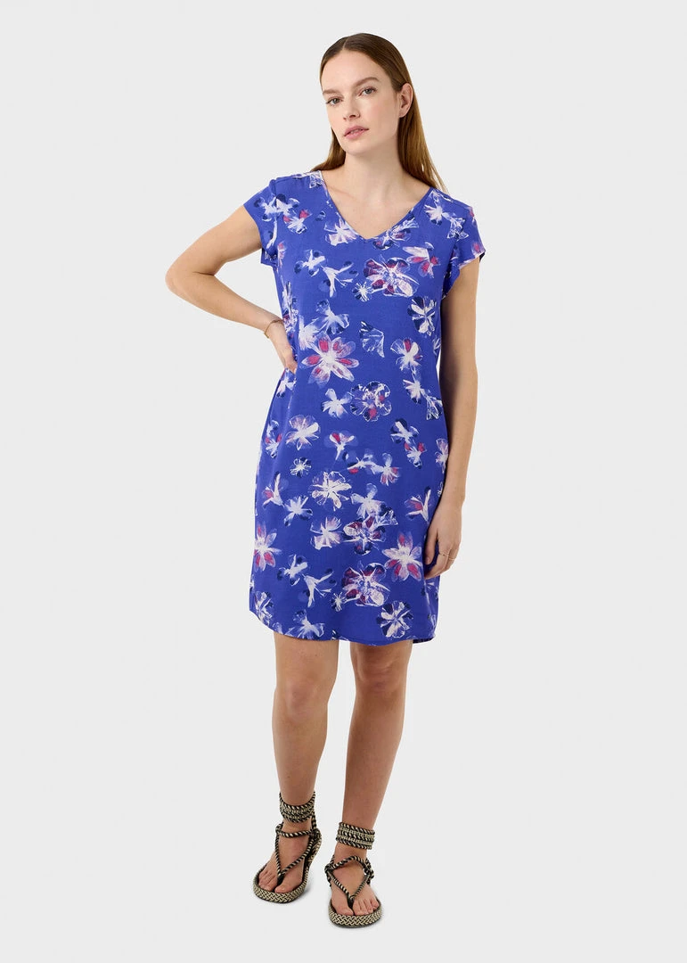 - The dress features a flattering silhouette with a tailored waistline, enhancing your natural shape. The elegant flower print adds a touch of sophistication to your look.