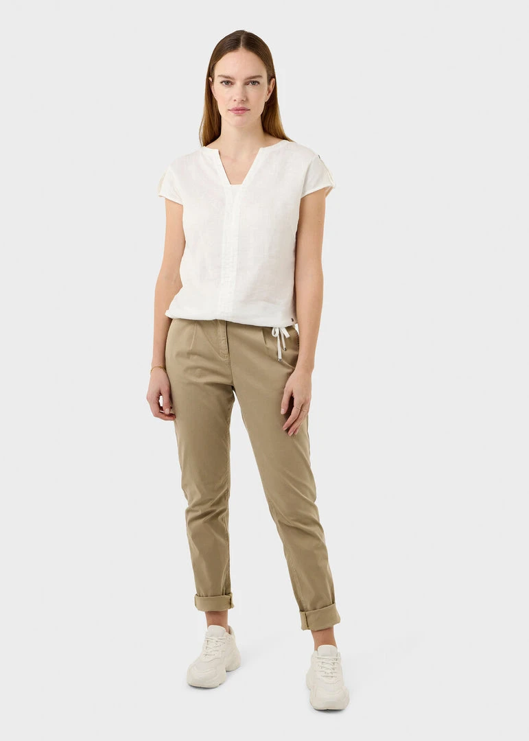 - Crafted from premium linen, the Sandwich Women’s Linen Blouse in Cloud offers a lightweight and breathable fit, ideal for warm weather and all-day comfort.