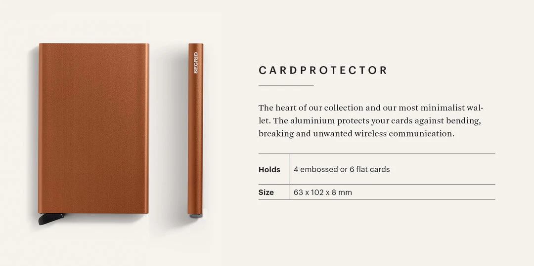 - Crafted with premium materials, the Secrid Cardprotector offers a compact and lightweight design, making it easy to carry in your pocket or bag without adding bulk.