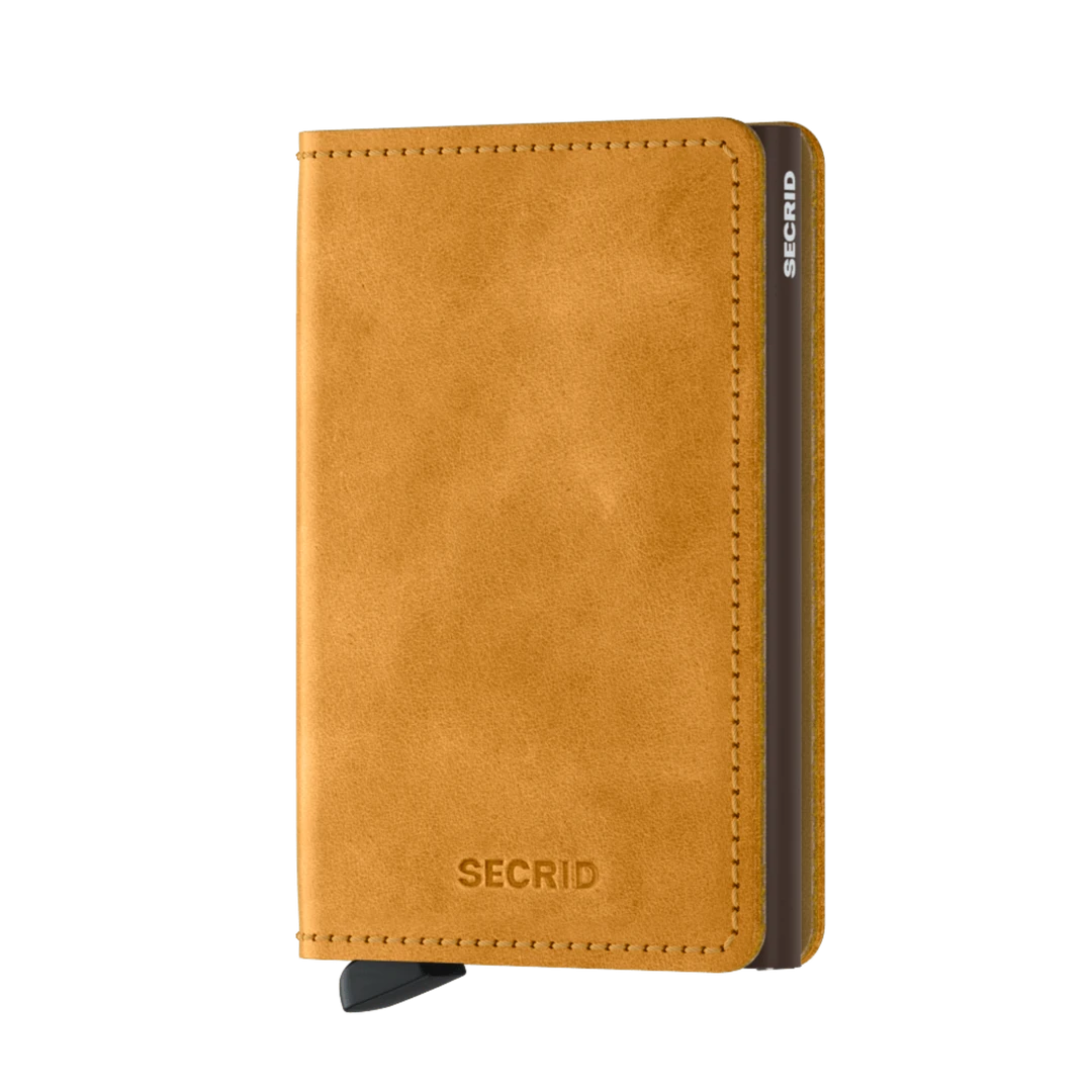 - Experience the perfect blend of style and functionality with the Vamosoutdoors Secrid Slimwallet in Vintage Ochre. Crafted from high-quality leather, this slim wallet is designed to keep your essentials organized and secure.