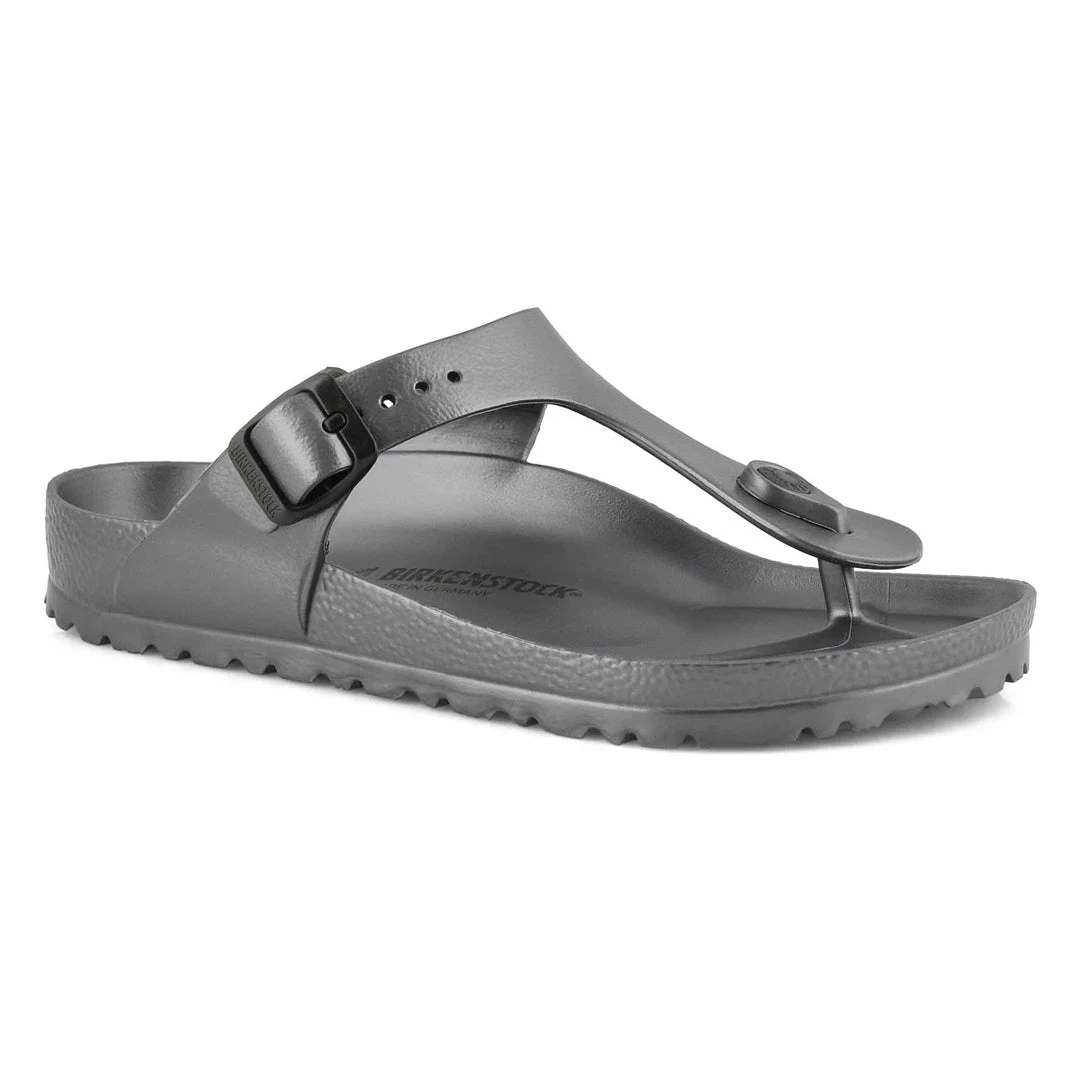 - Crafted from high-quality EVA material, these sandals are lightweight, waterproof, and easy to clean. The Gizeh Anthracite design offers a sleek and modern look that complements any outfit.