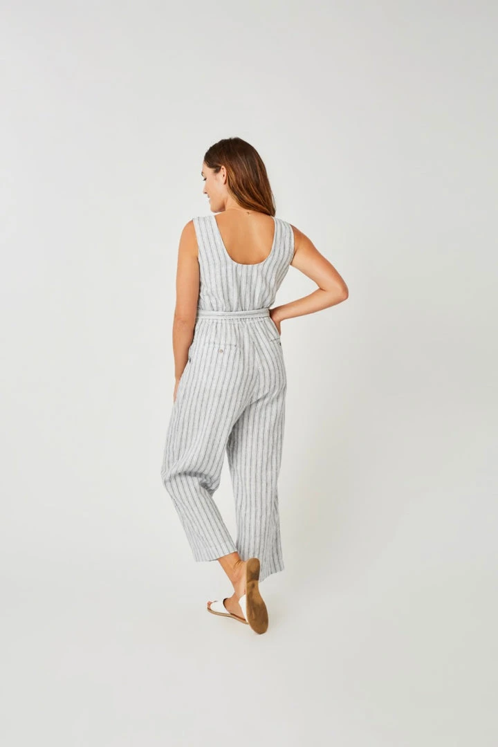 - Crafted with high-quality materials, this jumpsuit offers a flattering fit and exceptional durability. The Navy Byron Stripe pattern adds a touch of sophistication to your look.