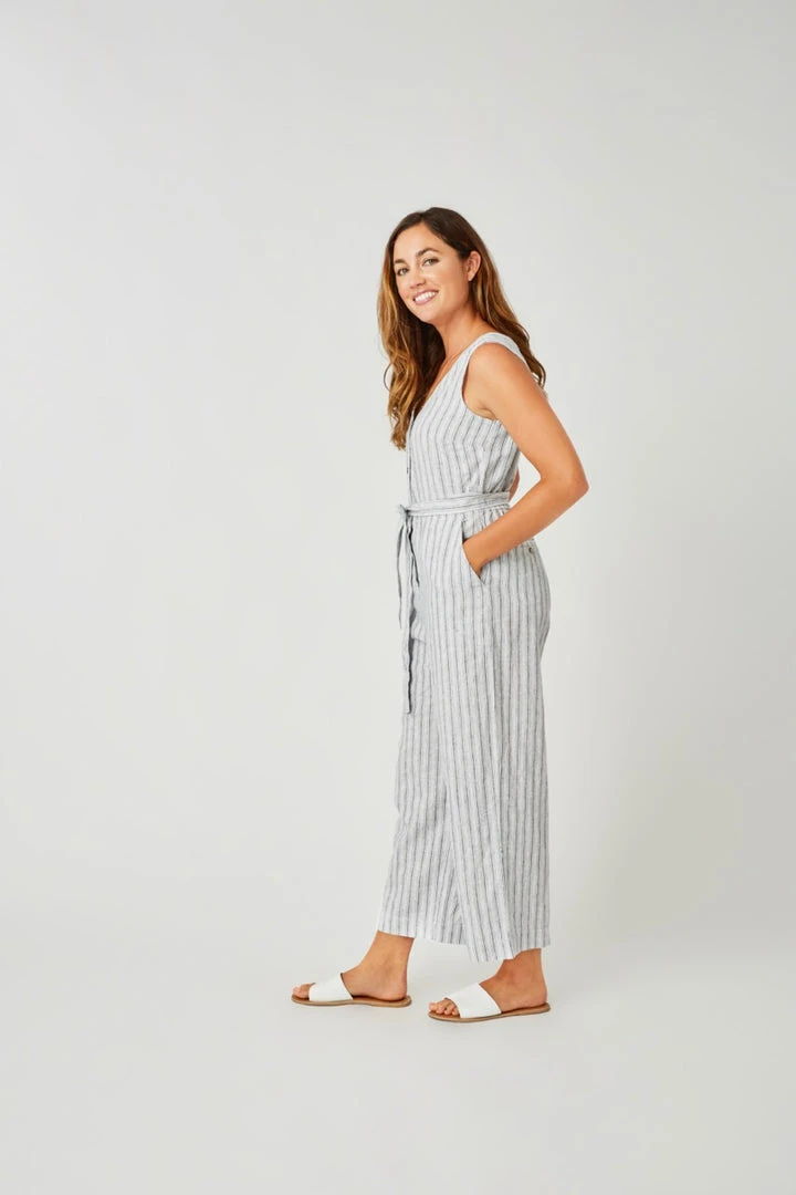 Vamosoutdoors Women’s Bonfire Jumpsuit – Navy Byron Stripe | Stylish & Comfortable Dresses