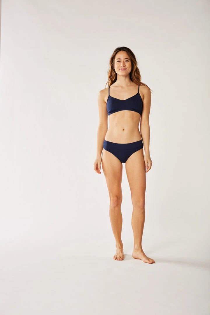 - Made from high-quality, durable fabric, the Stinson Bottom ensures long-lasting wear while providing a snug and comfortable fit. The navy color adds a classic touch to your swimwear collection.